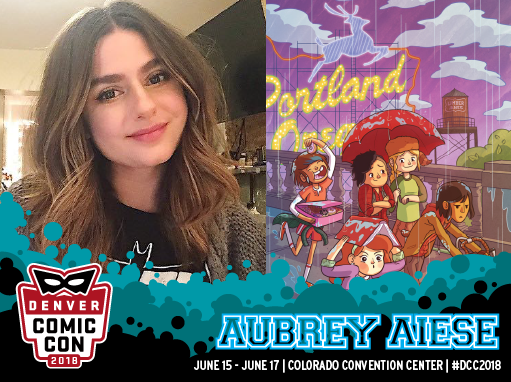 Aubrey Aiese is an illustrator and two-time Harvey nominated letterer from Brooklyn, New York currently living in Portland, Oregon. Aubrey is currently working on BOOM! Studios' Lumberjanes comic. She loves eating ice cream, drawing things, and playing with her super cute puppy, Ace, and her other, equally cute puppy Penny. She also makes adorable ceramic pins that will be available at her table in Artist Valley!